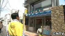 すると次に目にとまったのは青いお洒落なお店。開店したばかりらしく「生ブッセ」と書かれた看板に、その隣には巨人の大先輩である王さんからお祝いのお花が飾られています。一体ここはなにが売っているのでしょう?宮本さん調査してみる事に!