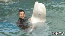 宮下さんはシロイルカに乗ったり、ハグやキスまで、シーパラダイスが実施するふれあいプログラムを体験しました。