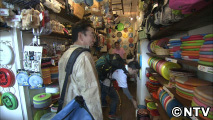 フライングディスクで遊んだことはあるけど、専門店がある事に驚いた石丸さんは店内へ。中にはカラフルなフライングディスクがズラリ!!