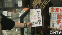 近藤勇の墓所や路地裏に古い銭湯が残っていたりと、趣のある板橋で見つけた「かき氷餃子」の看板。