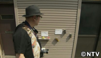 アーケード街を抜けると、シャッターに「チャカポコ」なる空き缶がくっついたお宅を発見。