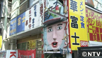 終点・大宮駅で下車。さっそく「皿まわしエクササイズ」と書かれた看板に遭遇。棒の上で皿を回す、一般的な皿回しを想像していたなぎらさんですが、実際に見せてもらうと、予想を裏切る結果が…!