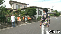 しばらく歩いていると住宅街の中へ。そこで塀に何か干している人を発見!