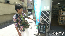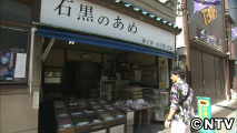 裏路地の大きなビワの木に興味津々。表に回ってみると昔ながらの飴屋さんを見つけました。話を聞いてみるとビワの木は、飴屋さんの木だということで甘くて美味しいビワのおすそ分けを頂きました。