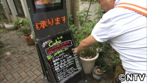 駅のすぐそばにある、緑が豊かな道を歩いていると、イタリア食堂のメニューボードに、バーニバーニャカウダー380円、霜降り肉290円と格安値段が記載されている事に驚きのたい平さん。
