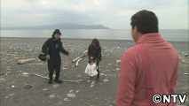 海岸をぶら~りとしていると、流木を拾っているご家族に遭遇。