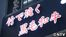 駅を出て路地を曲がるとすぐに「竹網で焼く黒毛和牛」と書かれた看板を発見した太川さん!旅の終わりに、新感覚の「竹」の網で焼く焼肉に舌鼓を打ちました!