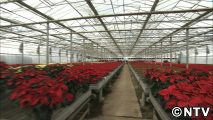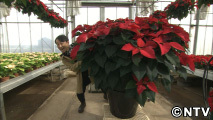 ぶら~りしていると、クリスマスを彩るたくさんの赤い植物を育てているビニールハウスの前を通りかかりました。それはポインセチアで12種類も育てているとのこと!ポインセチアって1種類じゃないの!?