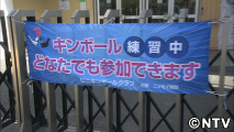 住宅街を歩いていると、小学校の門に「キンボール練習中」と書かれた幟を発見!誰でも参加可能との事で行ってみると巨大なボールを飛ばしてなにやらしている集団が!これがキンボール??