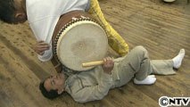 打っては跳ね、跳ねては回り、太鼓もろとも宙に舞う、何とも荒々しい太鼓踊り。