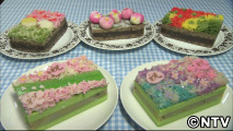 春夏秋冬、その時々の花を和菓子ケーキに表現しています。