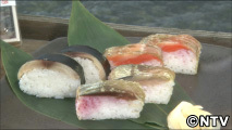 メニューはサバ、サーモン、サンマ。時期によってニシン、シャコが加わります。この棒寿司、地元で人気の一品で、小樽駅でも買う事が出来ます。 奥様が好きなハスカップを使った、ハスカップの寿司は2011年からの新作。