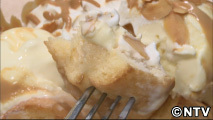 他に牛乳、生クリームなどを合わせ、モチモチ感にこだわった特注フランスパンを 6時間漬け込みます。