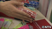 新開発した生地は三角の所に特殊な樹脂をプリントすることで