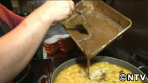 一度燻製にして混ぜ、チキンスープでルーを作っています。