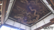 拝殿の天井にある全長8mの巨大な龍の彫刻。