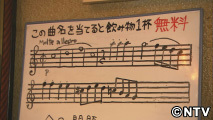 お客さんにクラシックに興味を持ってもらおうと20年前に始めた譜面クイズは、毎月問題が変わり、譜面から曲名を当てると飲み物が一杯無料。音楽をきっかけとして役立てられています。