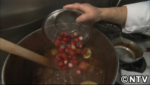 自慢のデミグラスソースは、季節のフルーツをたっぷり入れて作ります。