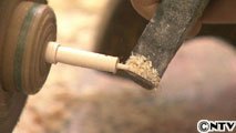 こちらの3代目ご主人・田中さんは、ろくろ細工で独楽を作り始めて60年。