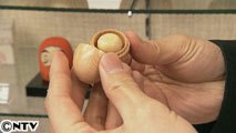 日本一小さい開運独楽は、田中さんが9年前に考案。