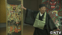 麻布十兵衛さんは、地獄絵の絵解きを通して子供たちに道徳を教えたいと考えています。