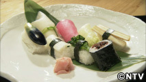 ネタには、季節ごとに旬の漬物を彩り鮮やかに並べ