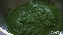 小松菜をジュレにしたものや、ソースにしたもの、餡に練り込んだものなど、