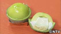 これはメロンを綺麗にくり抜いて、中にメロン味のミルクプリンや