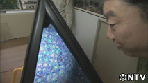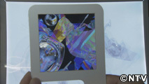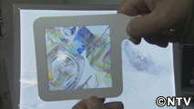 光を通して見ることで、挟んだものの部分の色が変化します。