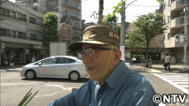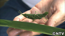 帽子にカマキリやバッタを乗せて、街を散歩する小松崎さん。