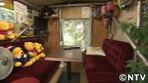 子供たちが楽しめるようにと、自分も子供のころに夢見ていたツリーハウスを廃材を利用し5日間で製作。ツリーハウスの中には、テーブルやソファ、テレビや扇風機まで揃っています。