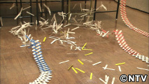 迫力ある新型ドミノ“スティックボム”は、元々アメリカで工作用の木の板を使って行われていた遊び。