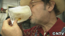 キンキンに冷えた氷のジョッキは、ぬるいビールを注ぐと温度差で氷が割れてしまうほど。