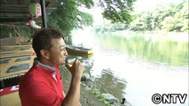 保津川下りの船売店をしています。40年ほど前からこの黄色のボートを反対の岸に置いてあるのだそう。