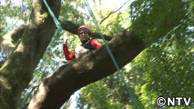 ツリークライミングはアメリカで生まれたロープで木登りをするレクリエーション。