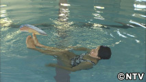 競泳とは違い、技を競うことはほぼないため、みんなでアドバイスをしながら技を磨きます。向井流の特徴は煽り足という脚使いで、全ての泳ぎの基本となっています。