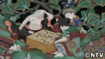 パンフレットに描かれている「布袋・恵比寿 碁打ち」は、神様が暇になるほど世の中が平和だという象徴だそうです。