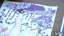 下書きをしないでハサミ1つで切り絵をするタナカマコトさん。