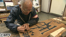 お兄さんが墨で書いては弟さんが掘る作業。