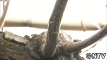 3年後の梨の成長、収穫を見越して枝に傷をつけて曲げていきます。