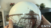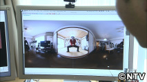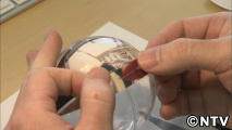 1996年ごろから、多面体として作り始め、10年前に、ようやく球体として完成したのが、このパノラマボール。魚眼レンズを取り付けたデジタルカメラで、四方・空・床まですべてを撮影できるように、何枚かに分けて撮っていきます。その画像を、パソコンを使って一つのパノラマ写真に合成。地球儀を作る要領で、プリントした写真を球体に張り付けていきます。完成したパノラマボールをくるくる回すと、その空間の周りや空、床までもを1つの球体で確認することができます。