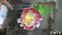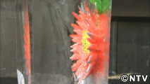 ドリルで作る氷の中に咲く花