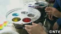 カービングキャンドルとは「ナイフでキャンドルを削りデザインする」技法を利用したキャンドル。星型のキャンドル本体の上に、色とりどりのワックスをなんどもなんども重ねて彩り、ナイフで削ります。