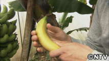 バナナは年中採れるそうで、完熟前に収穫する海外産にくらべて実が太く、味わいに特徴があります。他には、キウイ、ブドウ、ナシなどが主力。