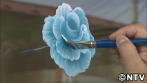 ワンストロークペインティングとは、アメリカの主婦だったドナ・デューベリーさんが考案したペイント技術。専業主婦だった千葉さんは、たまたまこの技法に出会い、弟子入り。何度も渡米してその技を学び、ワンストロークペインティングの認定講師となりました。