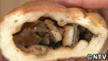 そして、成田名物の鉄砲漬けや海苔、山椒をからめたホワイトソースと一緒にパンの生地にくるんで焼けば出来上がり。