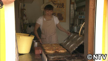 ここでは片面がガス、片面が電気で焼くことができるノートブックのような機械を使いお好み焼きとたこ焼きを作っています。