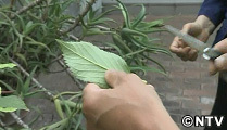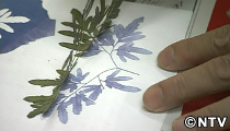 染めの歴史の神楽坂。より手軽に、かつ環境にいい染めものはないかと、代表の隆久昌子さんが40年ほど前から研究を重ね、「山の幸染め」を生みだしました。葉っぱの葉脈にいたるまで鮮明に映し出す山の幸染め。専用のシートを使えば、葉っぱだけでなく、花や鳥の羽のような自然の恵みと美を活かした、味わい深い染めを体験することができます。