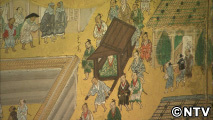 展示期間中、前期と後期に分かれ、「洛中洛外図屏風」全7件を全て見ることができます。その中の一つ、国宝「上杉本」。織田信長が、この画を上杉謙信に送ったことから「上杉本」と呼ばれています。上杉謙信が描かれていると言われています。