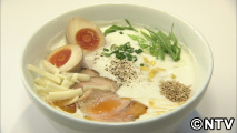 また、3種類のスープを独自の配合で合わせミキサーにかける事でメレンゲのような泡が出来、麺とより絡みやすくなっている研究された一品となっています。